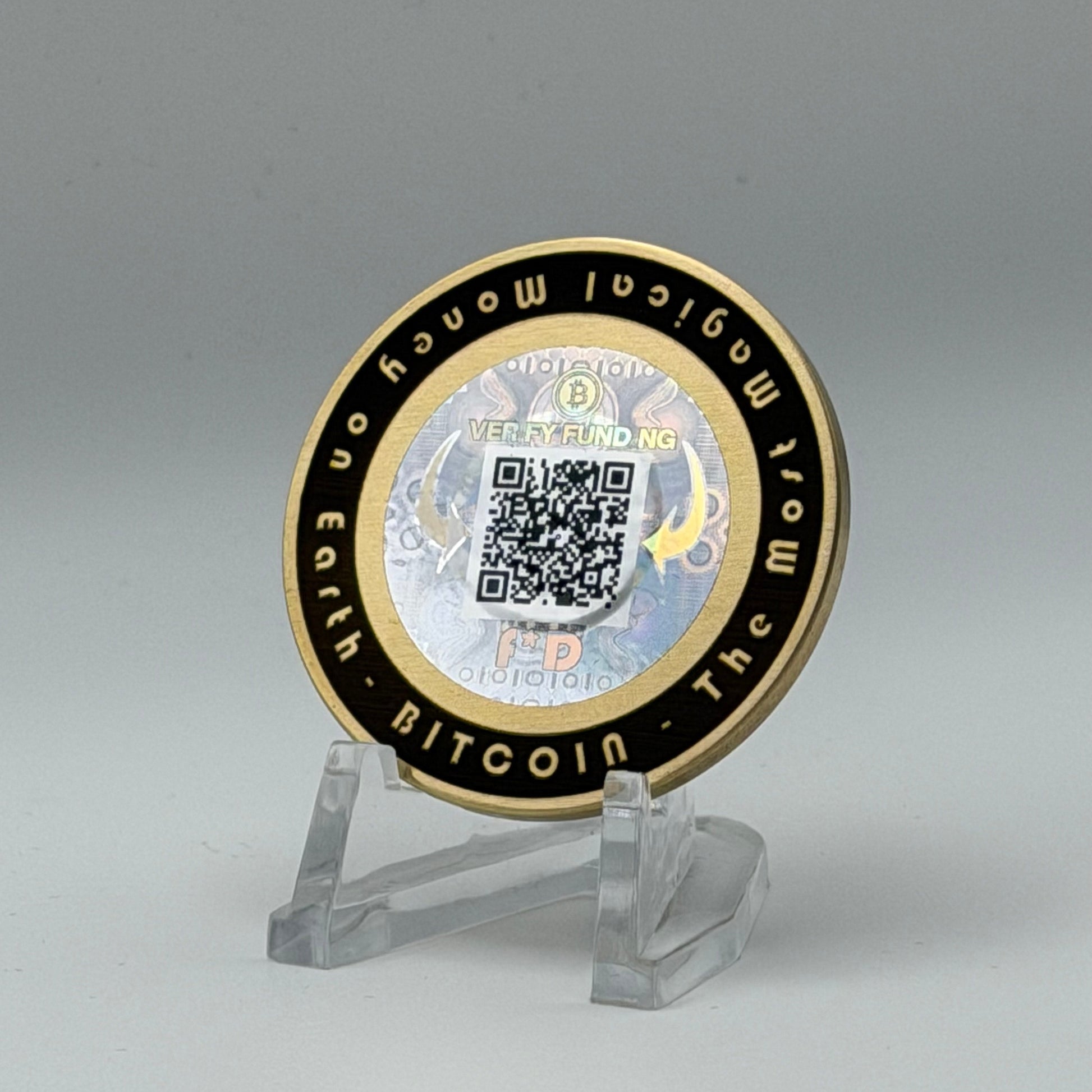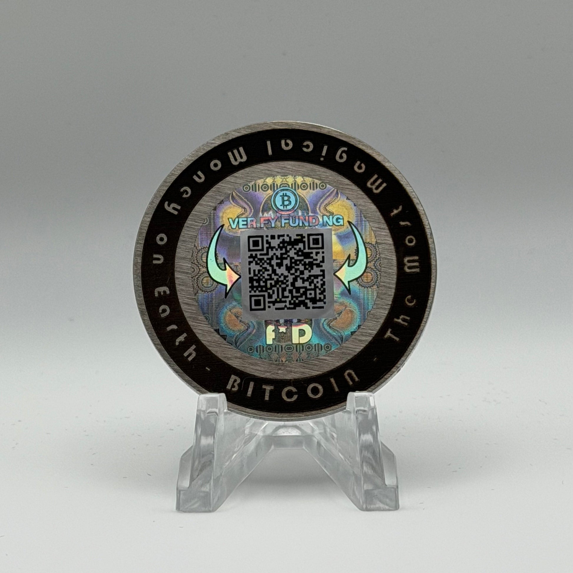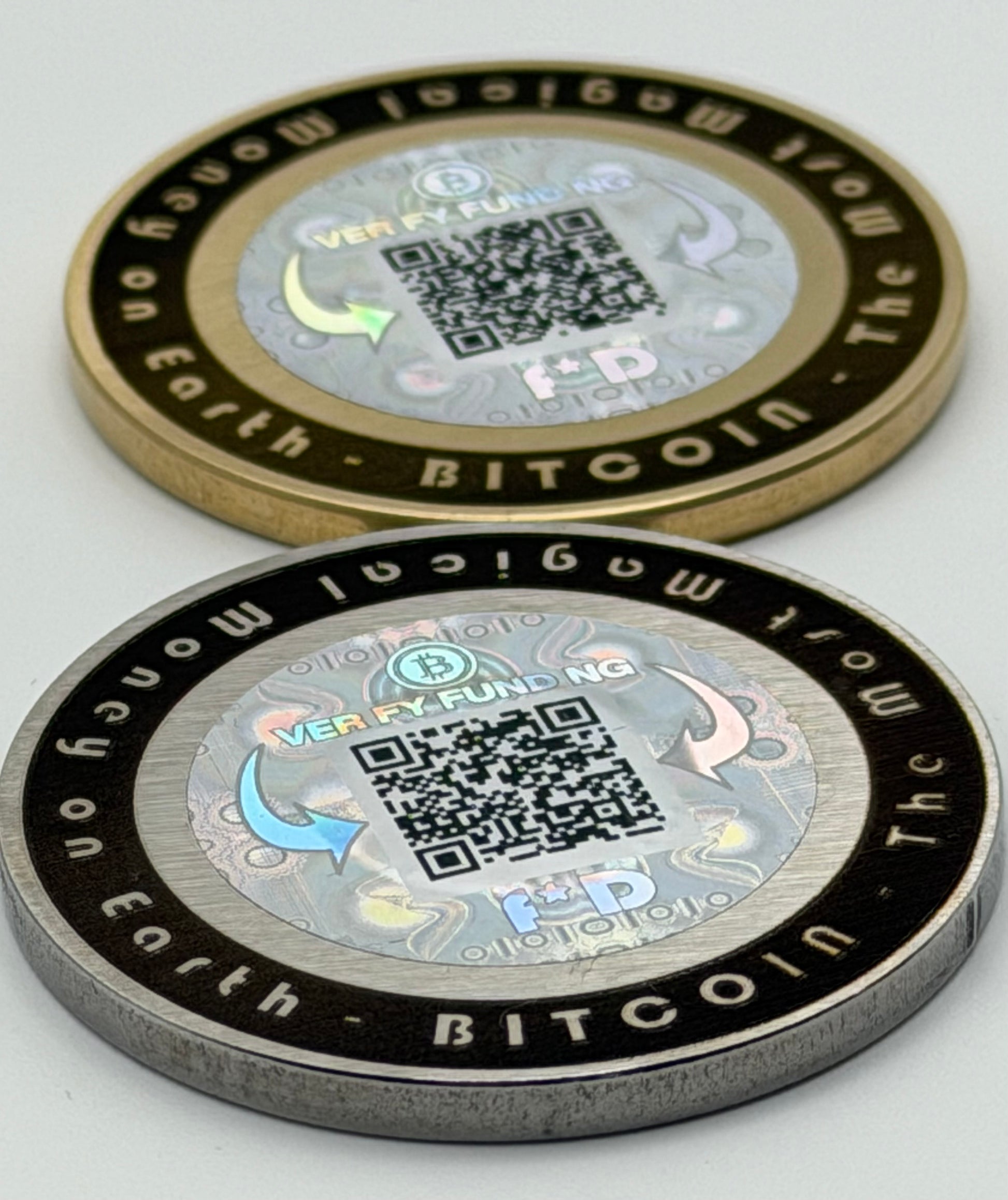 Each coin contains a unique, air-gapped private key, permanently sealed beneath a custom tamper-evident hologram.