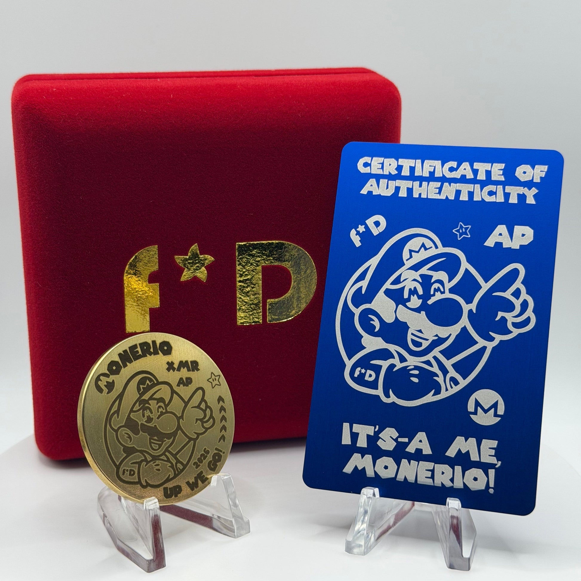 It is self-custodied Monero, sealed in brass, issued once, and never repeated.