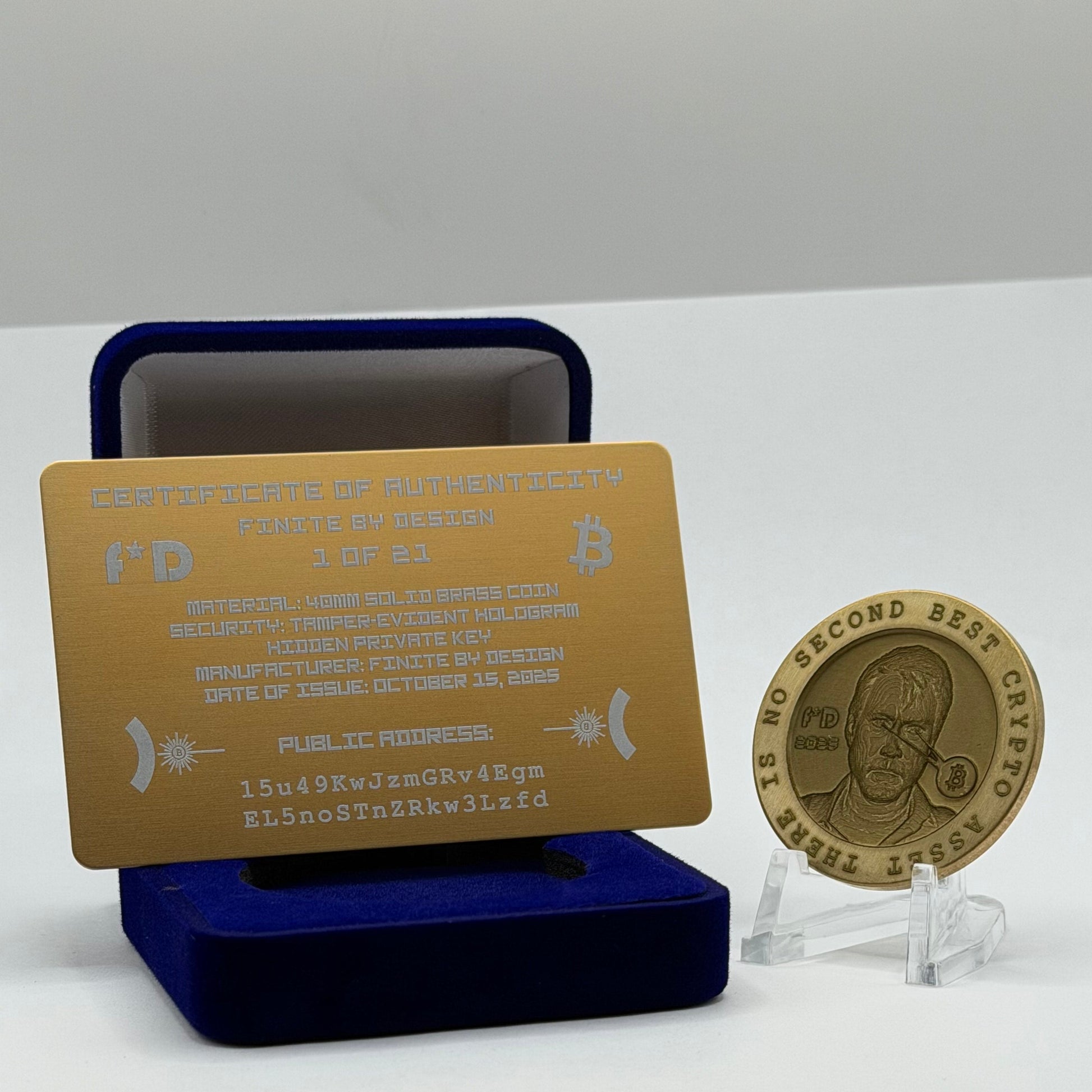 A statement struck in metal. This ultra-limited release pays tribute to one of Bitcoin’s most unapologetic champions — the man who declared: