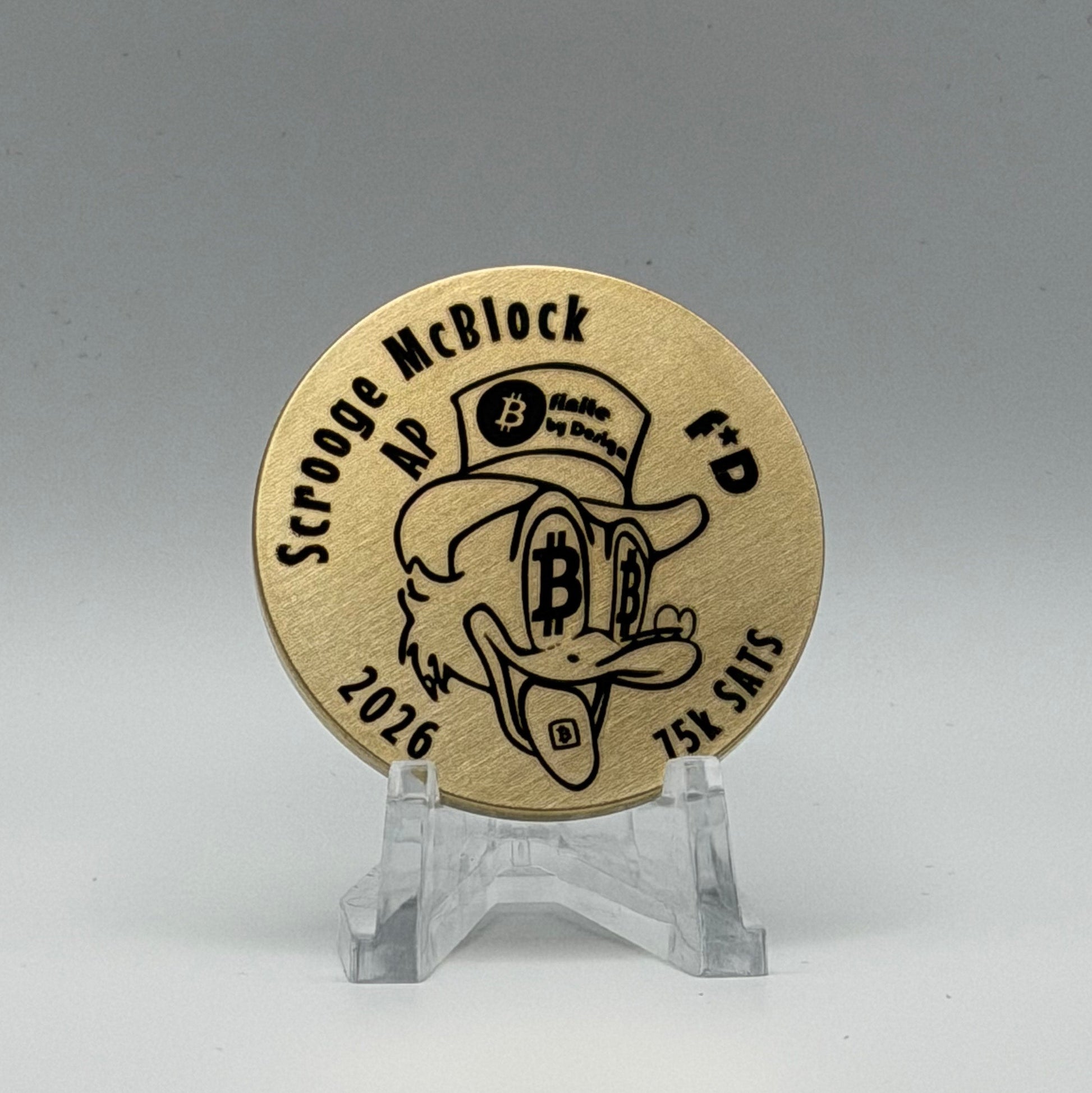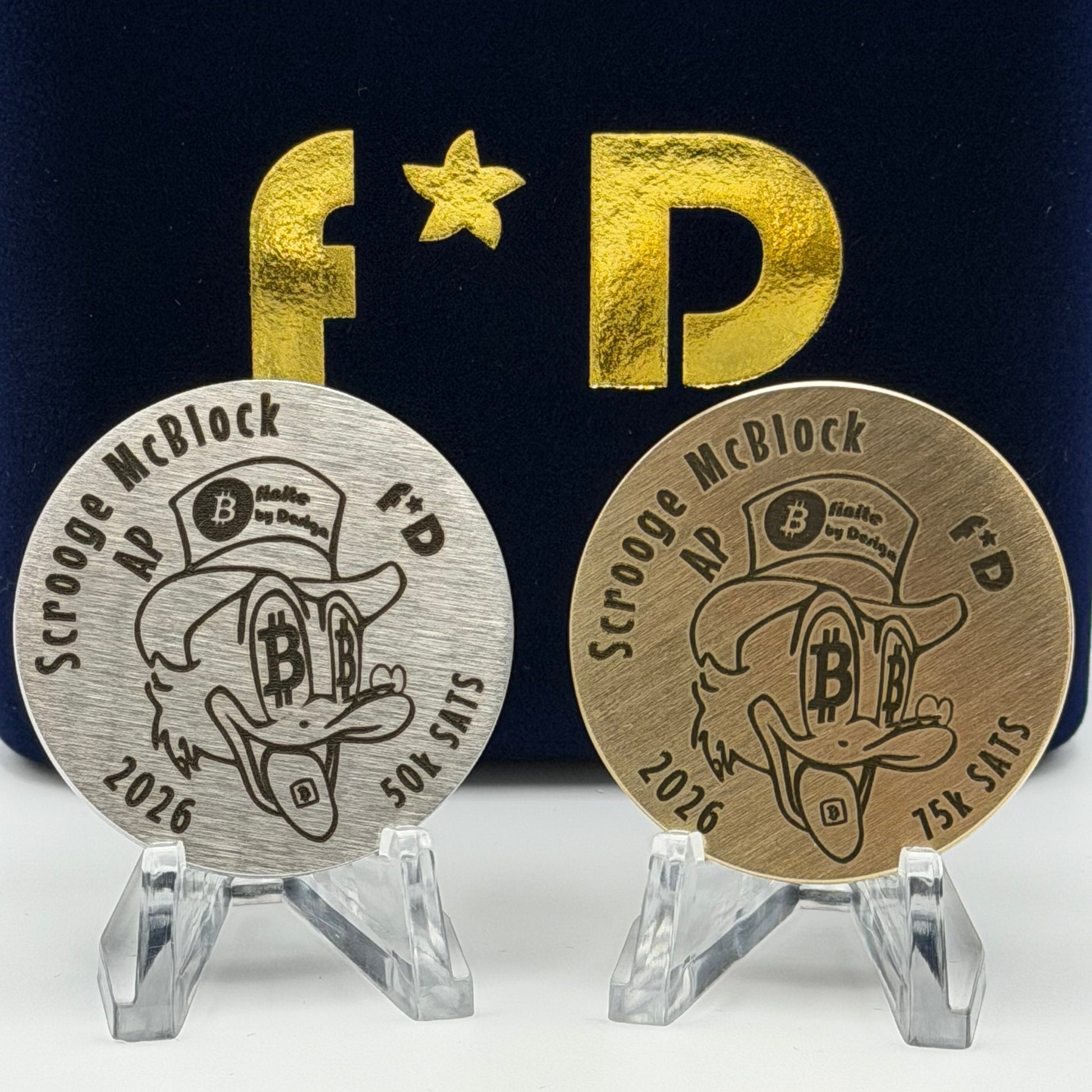 The Scrooge McBlock coin set is a two-piece, ultra-limited physical Bitcoin time capsule—precision-engraved, individually assembled, and built to last generations. Blending irreverent crypto culture with uncompromising security practices, each set represents a permanent artifact of the Bitcoin era.