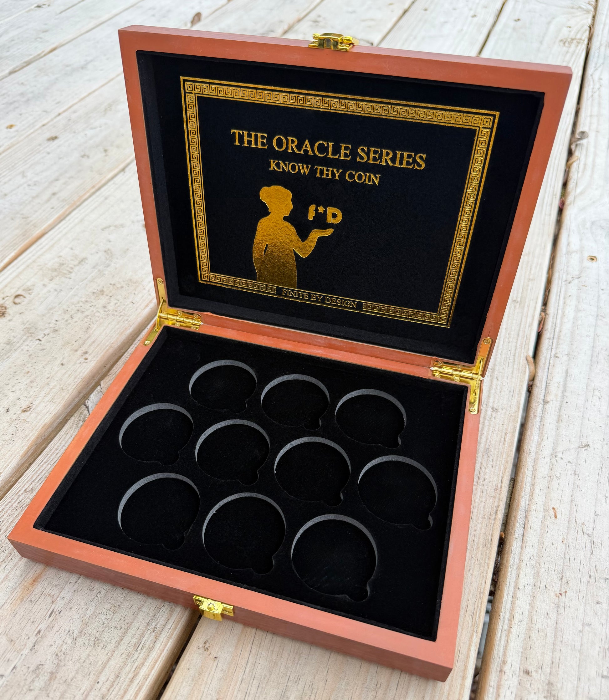 Engineered specifically for the 40mm Oracle coins, this chest transforms a collection into an archive - a physical record of conviction, discipline, and design carried through ten months of issuance.